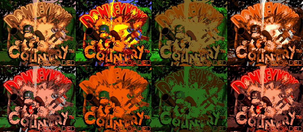 As seen in the image above, I then made 8 more copies of the image and applied a different palette from DKC's title to each one.