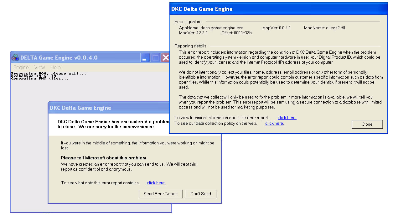 Just downloaded the new version, copied the rom into the main DELTA folder and ran the program. Sometime through the extraction the program crashed. Here is the error message I got.