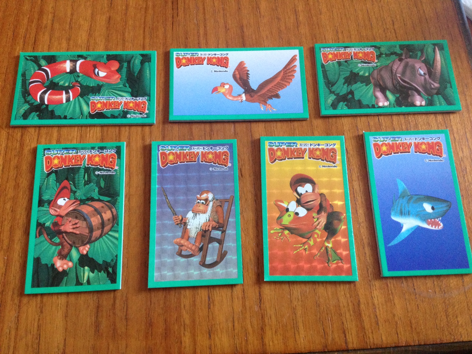 Hi all, bumping this for a good reason! I've put some work into collecting material related to the Japanese Donkey Kong trading card game. Well, most of the work was done by DKVine's Man-Frog in scanning his collection, but I've supplemented it and put together a big package of all known card art. It's mainly based on the animated series and DK64; the illustrations are nice and if you're feeling adventurous you could even print some out and play a game.
