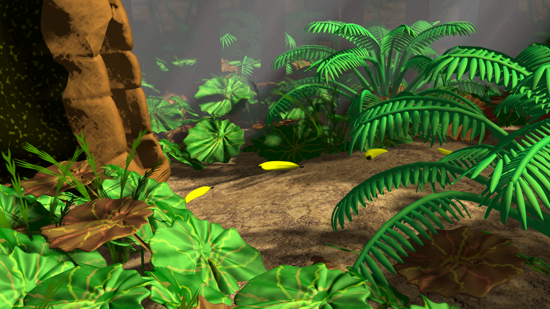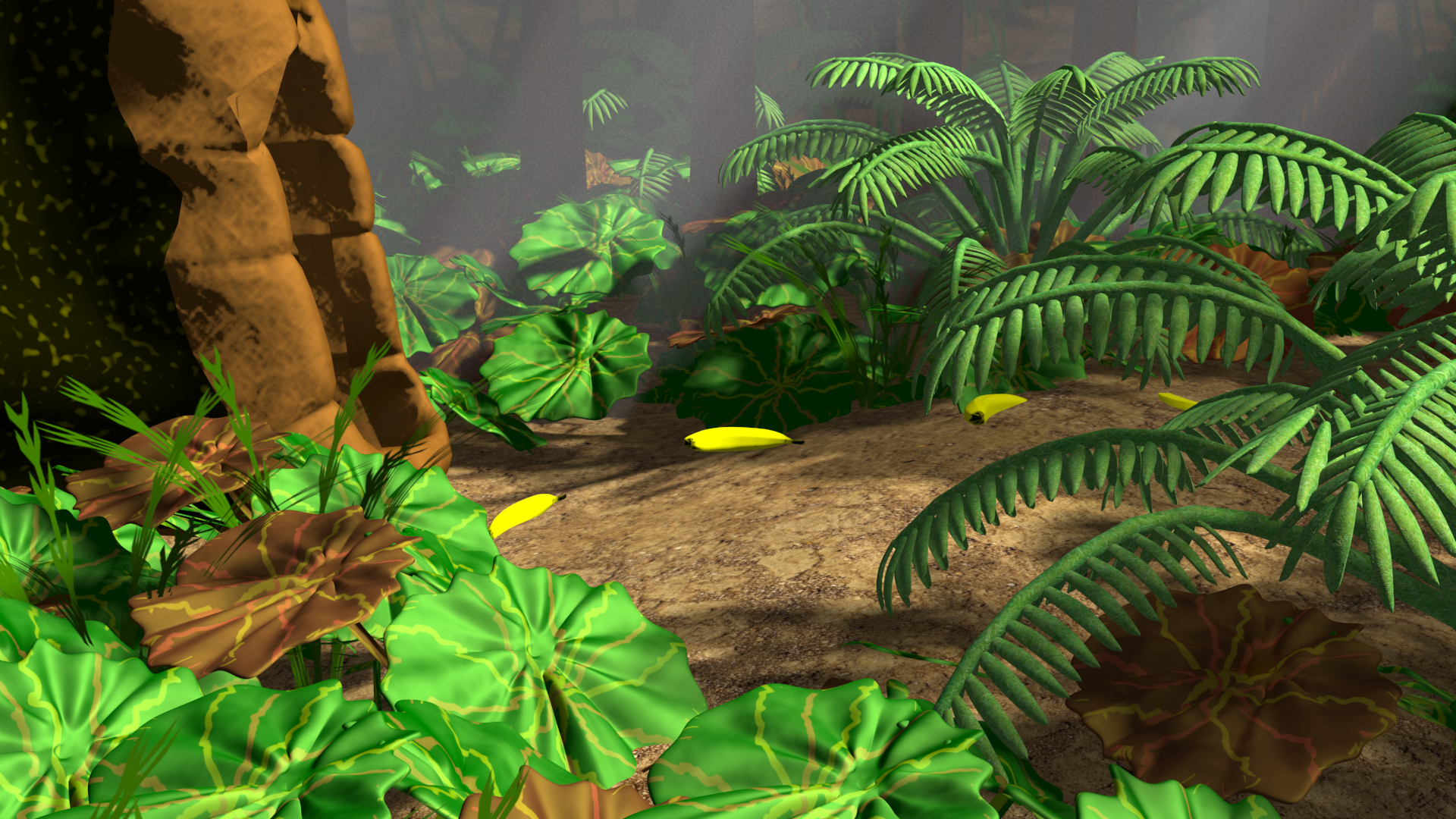 Can't believe I didn't place the trail of bananas in the scene before.