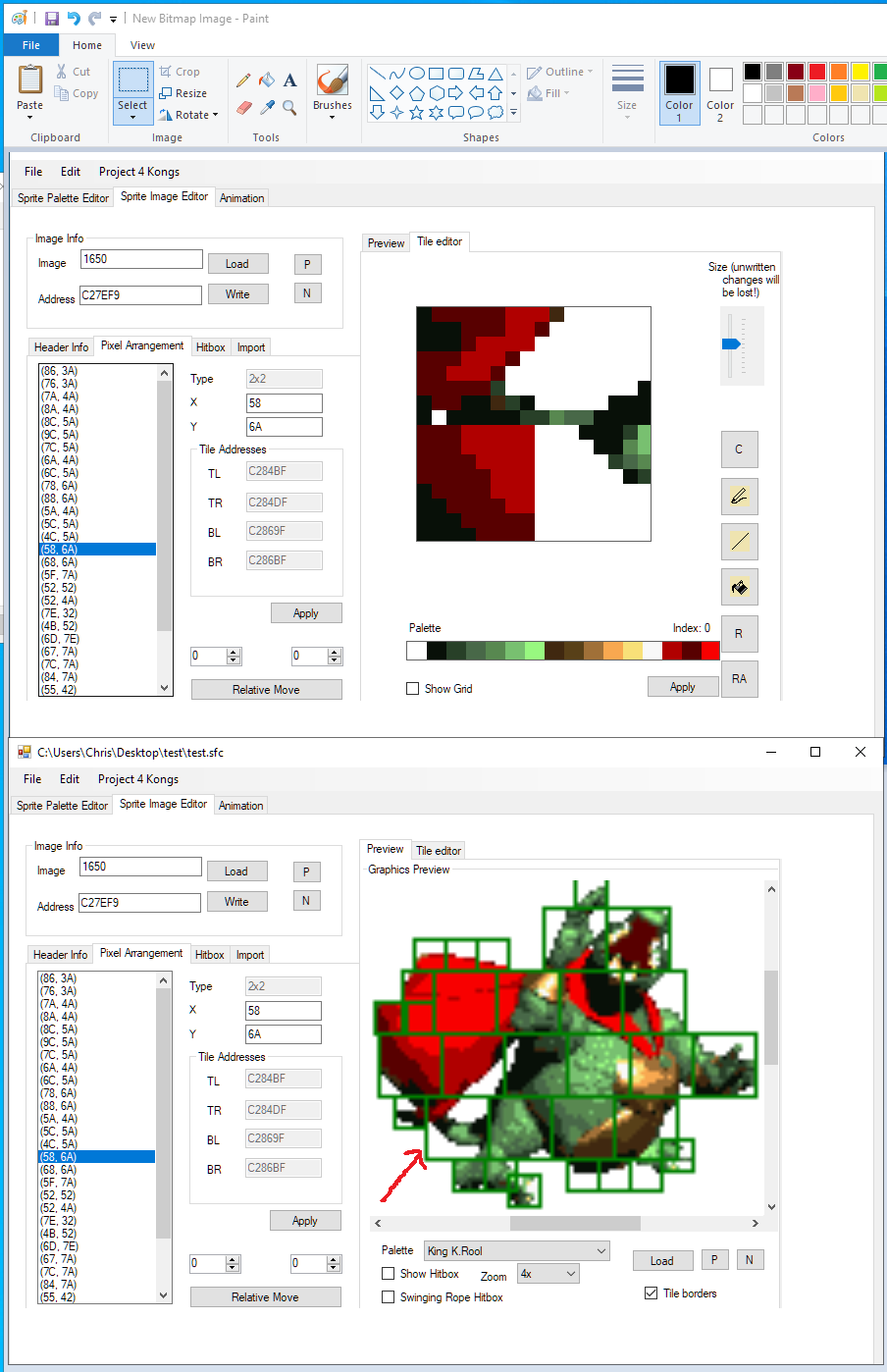 Hey all. I just finished this new tool and would like some help bug testing. In fact this program is heavily influenced by Quaraage's work. I pretty much copied these two tabs. This is a DKC1 graphics editor. This has the ability to change both object palette and the sprites associated. In the future, I plan on adding more to this but figured I would release this in the meantime. All buttons seen work. Please contact me with any bugs/features to incorporate here.